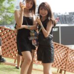 会場には今年のトレンドであるボヘミアンスタイルや、友達やパートナーと⾊やアイテムを合わせたシミラールックコーデに加え、柄シャツを取り⼊れたコーディネートも多く⾒られた。世界的なトレンドにもなっているストーンやパールを派⼿に使ったメイク、編み込み・三つ編みヘアなどメイクや髪型にも個性が溢れるファッションで会場は彩られた。
