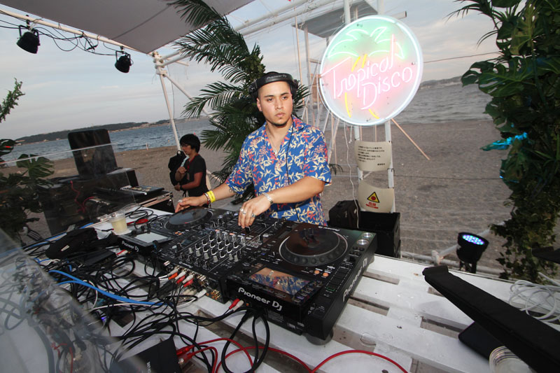 だが夕方より雰囲気は一変、横須賀港を背にTropica DiscoオリジナルのDJブースに、バー、砂を入れたソファーなどが浜辺に登場し、心地よいTropica Houseが流れ出す。