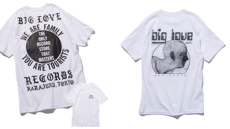 世界中のインディーミュージックを独自の嗅覚でセレクトし、今や世界中にファンを持つレコードショップが、「BIG LOVE RECORDS」だ。メインはもちろんレコードとカセットなのだが、こちらで取り扱うTシャツには、譲れない哲学がある。それは自分たちが日本に呼んだバンドとミーティングを重ねて作るオリジナルのバンドTシャツと、頼みたいと思える友人と作るオリジナルのレーベルTシャツだ。どちらもウェブでではなかなか販売されない、まさにお店でしか買うことができないこだわりのTシャツなのだが、それには深い意味がある。「最初はTシャツを見に来るでもいいのですが、自分で足を運んでもらって、レコードの文化に直接触れてみて欲しいんです。あくまでも私たちのお店はレコードショップなので、Tシャツはお土産感覚なマーチャンダイジングの一部なんです」。そうショップを運営する春果さんが話すように、Tシャツ類は、バースペースも併設する店舗の小さな一角に置かれている。あくまでもメインは、レコードたち。どうレコードを見たらいいのかわからないのなら、思い切って尋ねてみよう。そこからいろいろと知らない世界が、知っている世界へと変わっていくのだ。