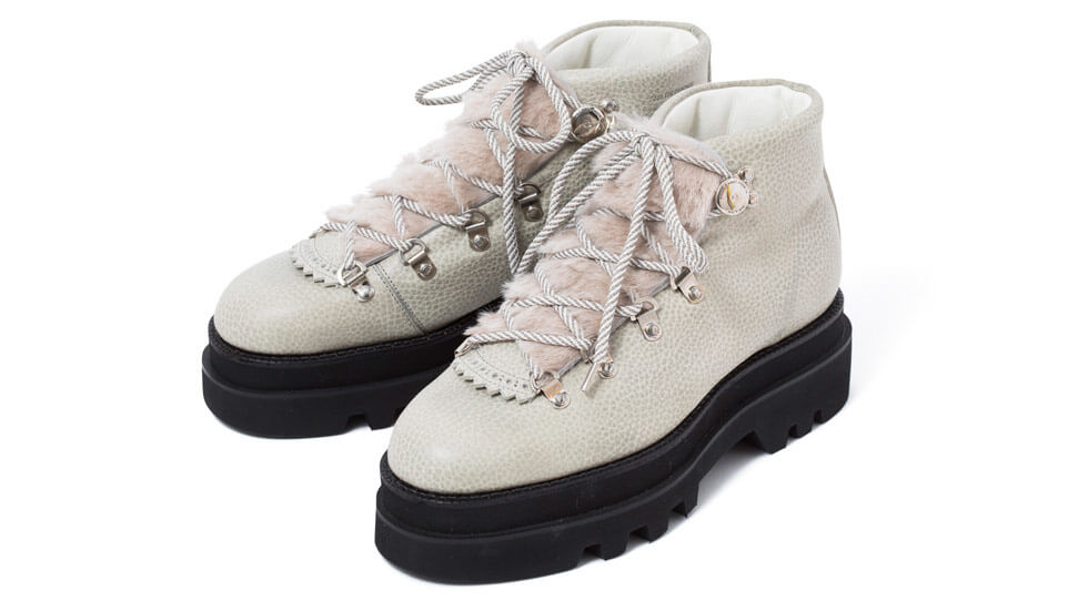 ヴィンテージ感漂う雰囲気とパープルのシューレースによるカラーバランスが絶妙な本作。デザイナー、藤井隆行のブーツ愛が光るスタイリッシュな仕上がりだ。5万5000円(vendor ☎03・6452・3072)