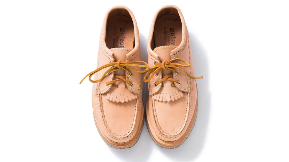 アメリカの工場で、昔ながらの職人が手縫いの製法で作り上げている本作。都会的なエレガントさに伝統的なモカシン構造が合わさったこだわりの1足。6万4000円(BAMBOO SHOOTS ☎03・5720・1677)