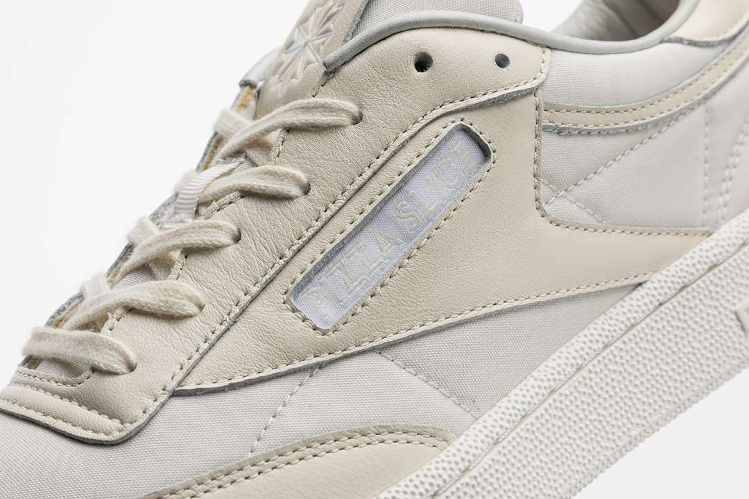 「PIZZA SLICE」とのコラボレ―ションは、2019 年に発売した T シャツに続き 2 度目で、今回は昨年 35 周年を迎えたリーボックの“裏定番”シューズ「CLUB C(クラブシー)」をベースに採用した。