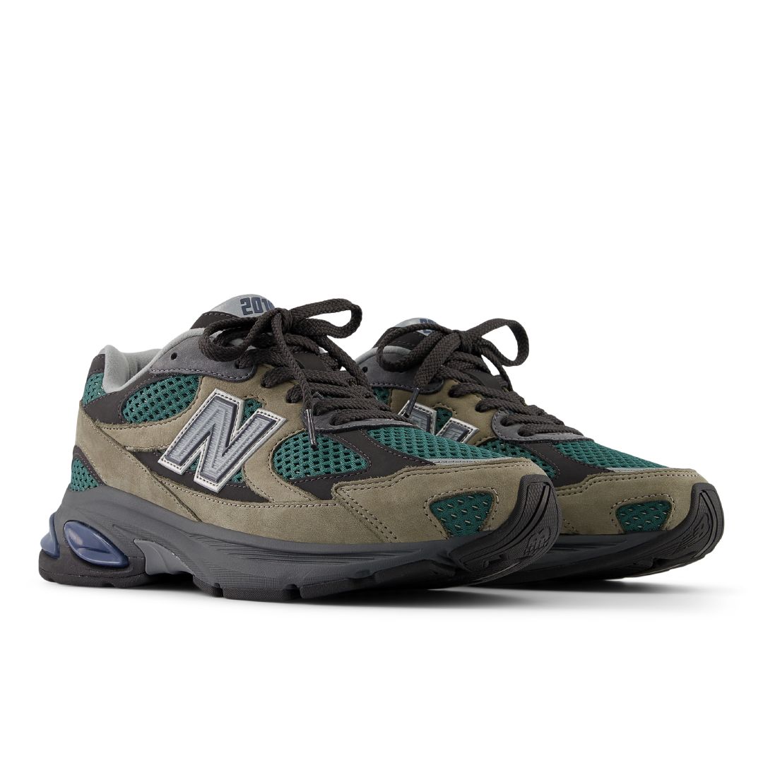 2000年代のランニングシューズにインスパイアされたクラシックな特徴を活かしつつ、ダイヤモンドニットメッシュのアッパーとヌバック、合成素材のオーバーレイを組み合わせ、現代的なエッセンスを取り入れている。