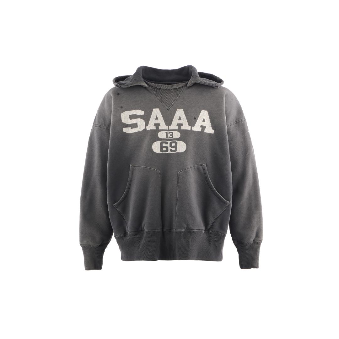 ©SAINT Mxxxxxxと老舗ヴィンテージショップBerBerJinが再びタッグを組み、唯一無二のコラボレーションアイテムを発表。本作では、BerBerJinディレクター・藤原氏が所有する1930年代の希少な後付けパーカをベースに、当時のディテールを忠実に再現。一点一点手作業による色落とし加工を施し経年劣化を再現したVリブ仕様が特徴。さらに、1940年代の後付けパーカを踏襲したモデルでは、セパレートポケットやダブルフェイス仕様など、当時特有の構造を現代的に再解釈しています。加えて、SAINT Mxxxxxxのデザイナー・細川が私物として所有するヴィンテージをもとに、バックに「SAINT」と大胆にプリントしたモデルも登場。精緻な加工技術によって、経年によるほつれや退色までもリアルに再現し、唯一無二の存在感を放つ仕上がりとなっている。ヴィンテージを知り