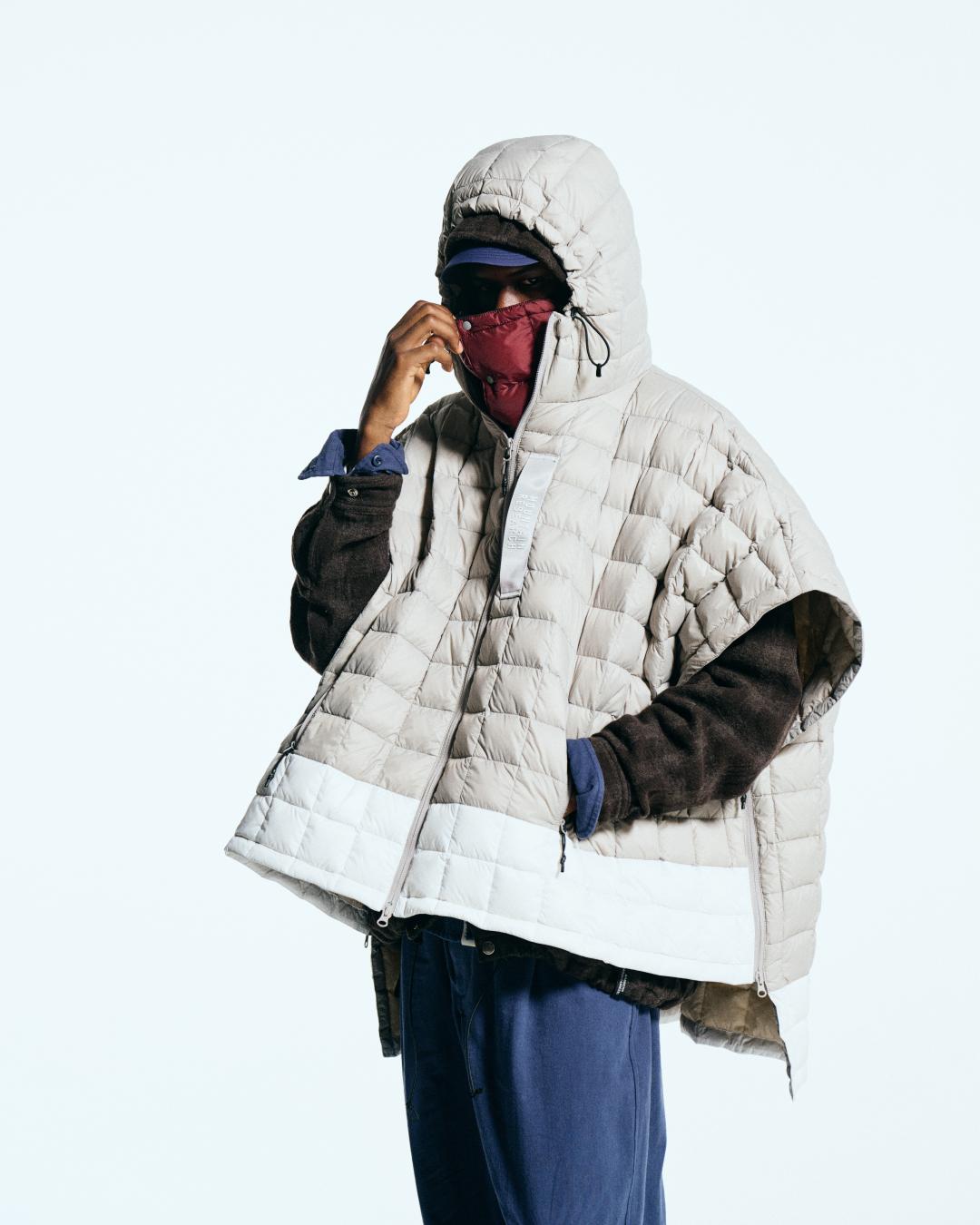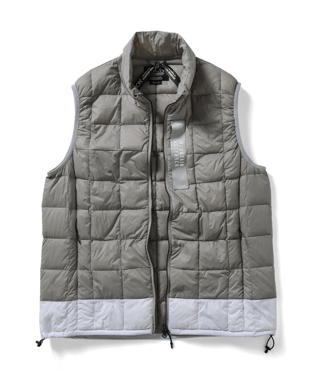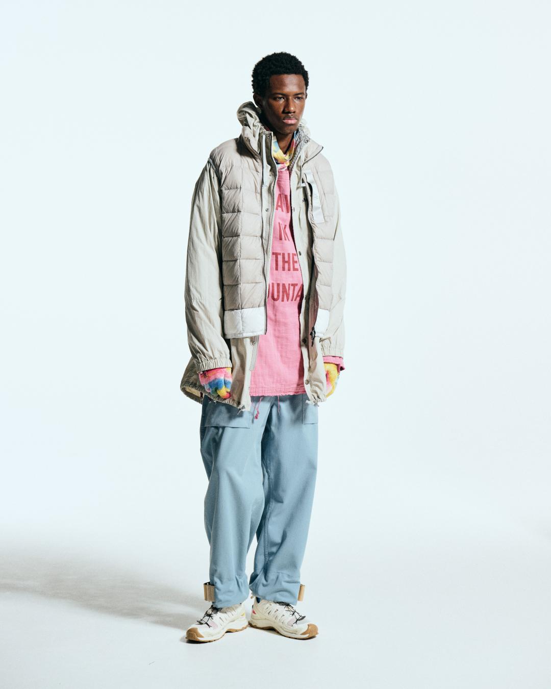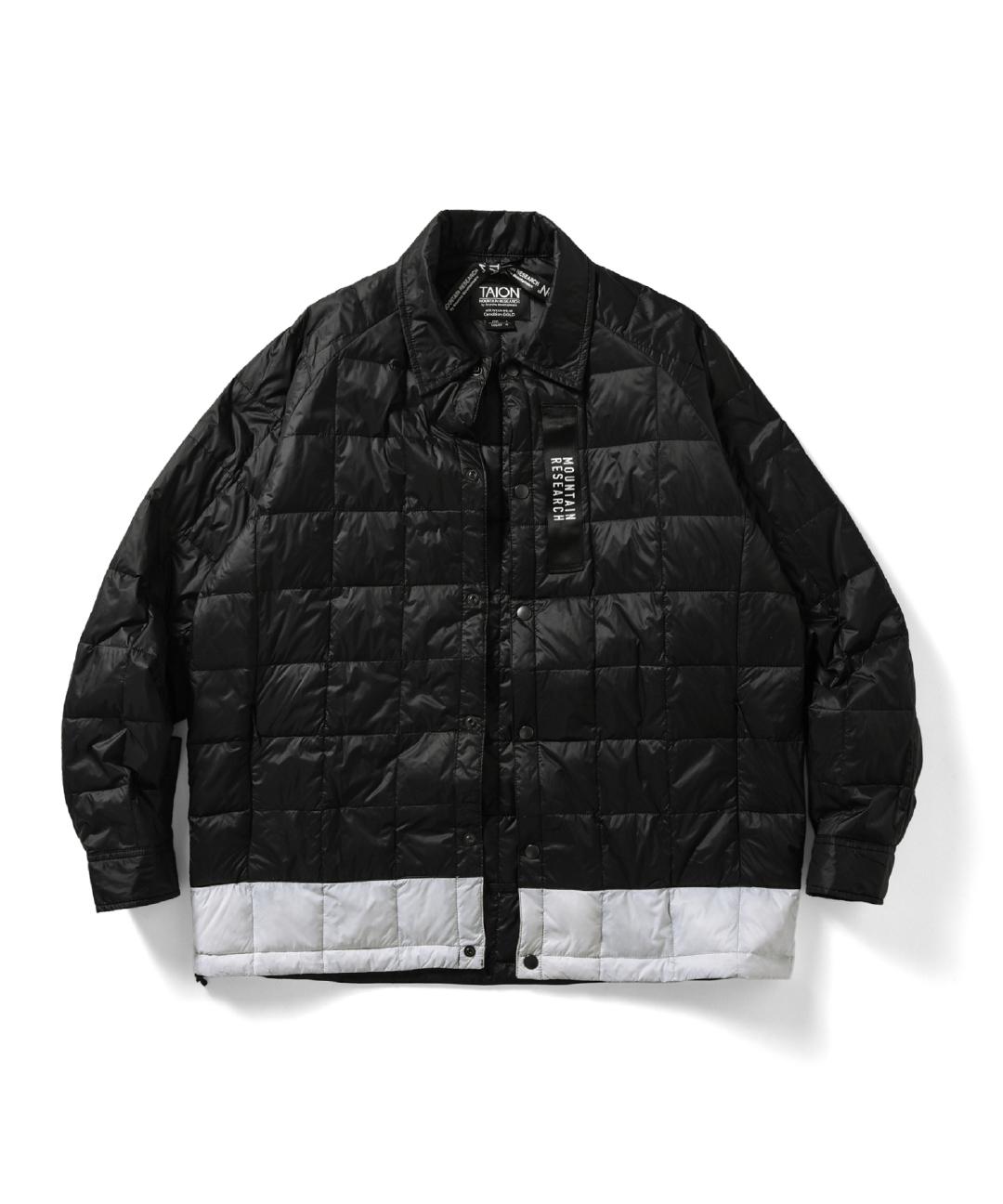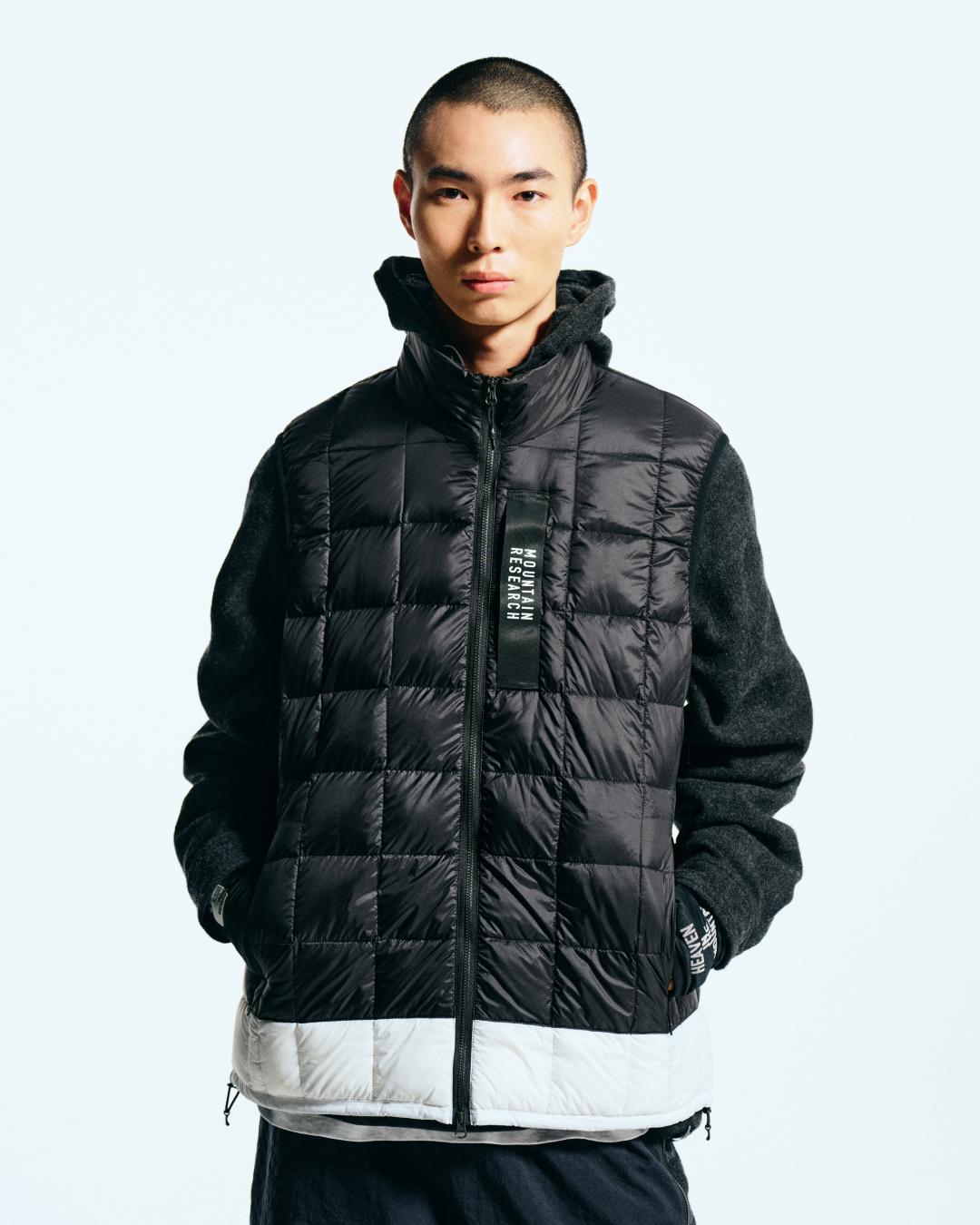 TAION定番デザインをベースにMOUNTAIN RESEARCHの仕様やサイズ感を備えたデザイン。裾をホワイトに切り替えたカラーリングが目を惹く。IDシリーズでお馴染みのブランドネーム入り(IDシリーズではA.M.)テープ仕様のスリットポケット付き。800FPのダウンを採用し、薄手ながら保温性は抜群。インナー、アウターとしても実用性あるダウンウェア。