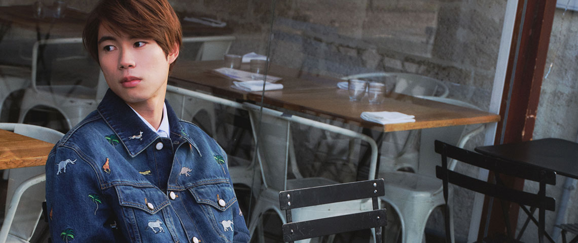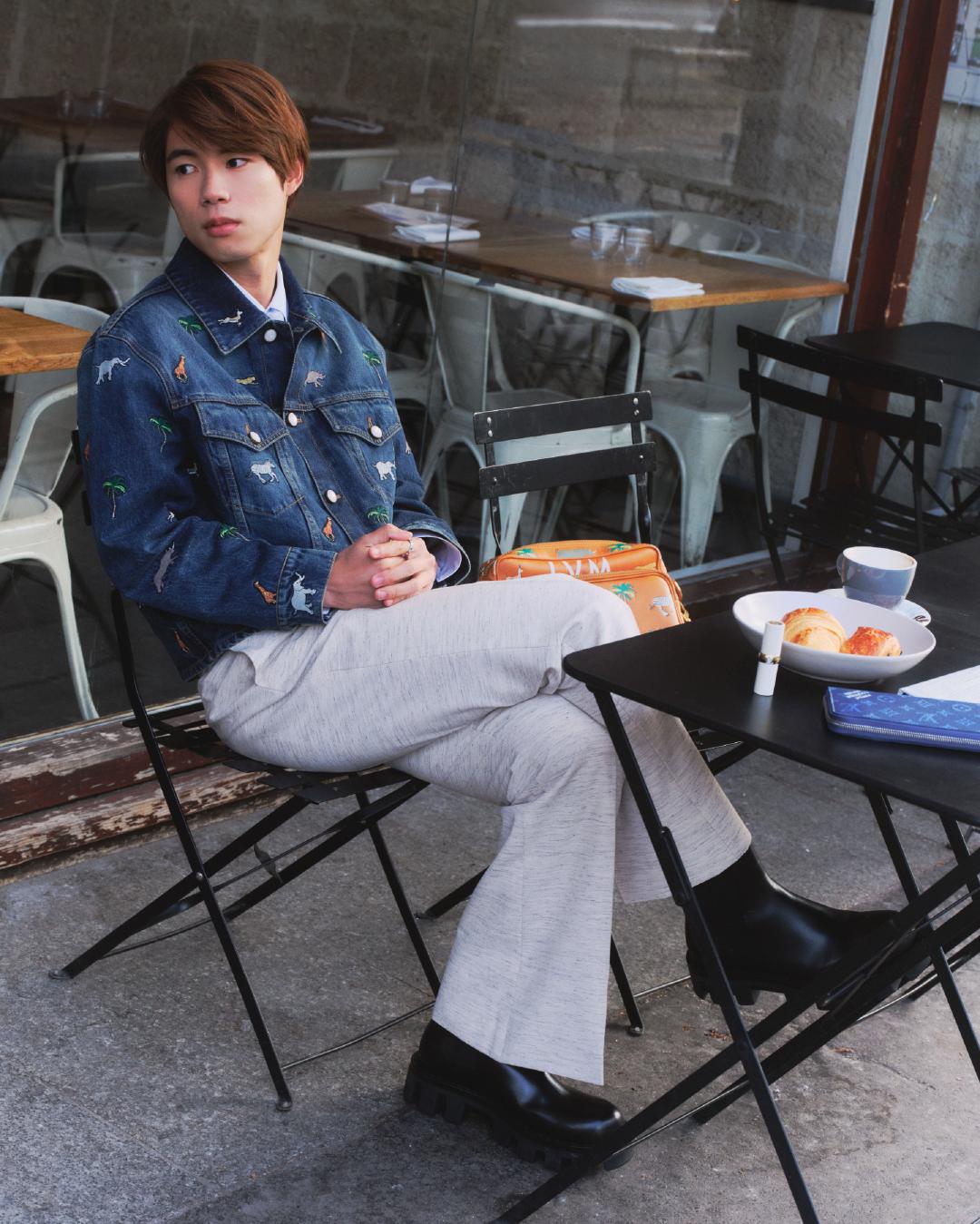 デニムシャツ¥720,500、シャツ¥213,400、パンツ¥291,500、ネクタイ¥36,300、ブーツ¥216,700、バッグ「LV × ザ・ダージリン リミテッド ナイル GM」 ¥709,500、リング「ル ダミエ ドゥ ルイ・ヴィトン」(ホワイトゴールド×ダイヤモンド) ¥1,595,000、ウォレット「ジッピー・ウォレット ホリゾンタル」(日本限定) ¥145,200、LV バーム 000 インフィニット ドリーマー¥23,100