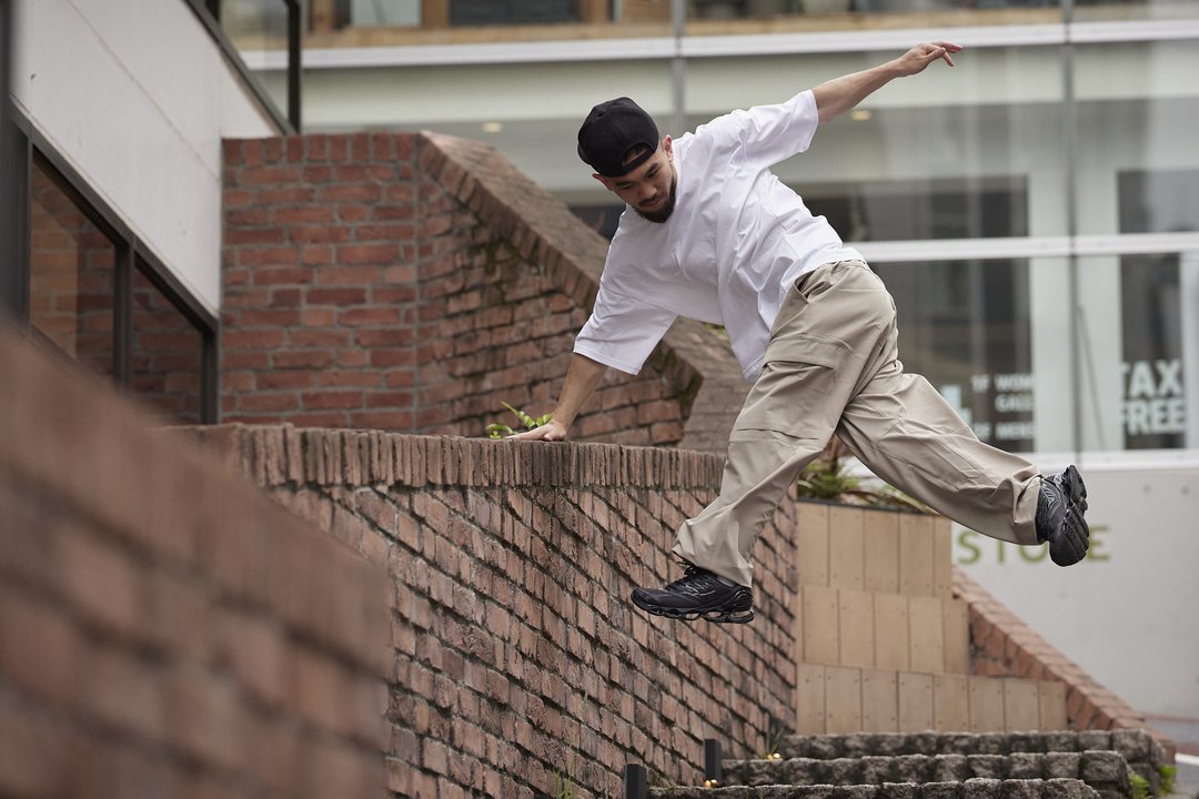 本コレクションは「Fashion=融合」をテーマに、都市空間での性能と機能をシンプルなモノトーンやミッドトーンで表現している。D1シューズとのコラボにより、伝統と革新が融合したプロダクト群を展開。