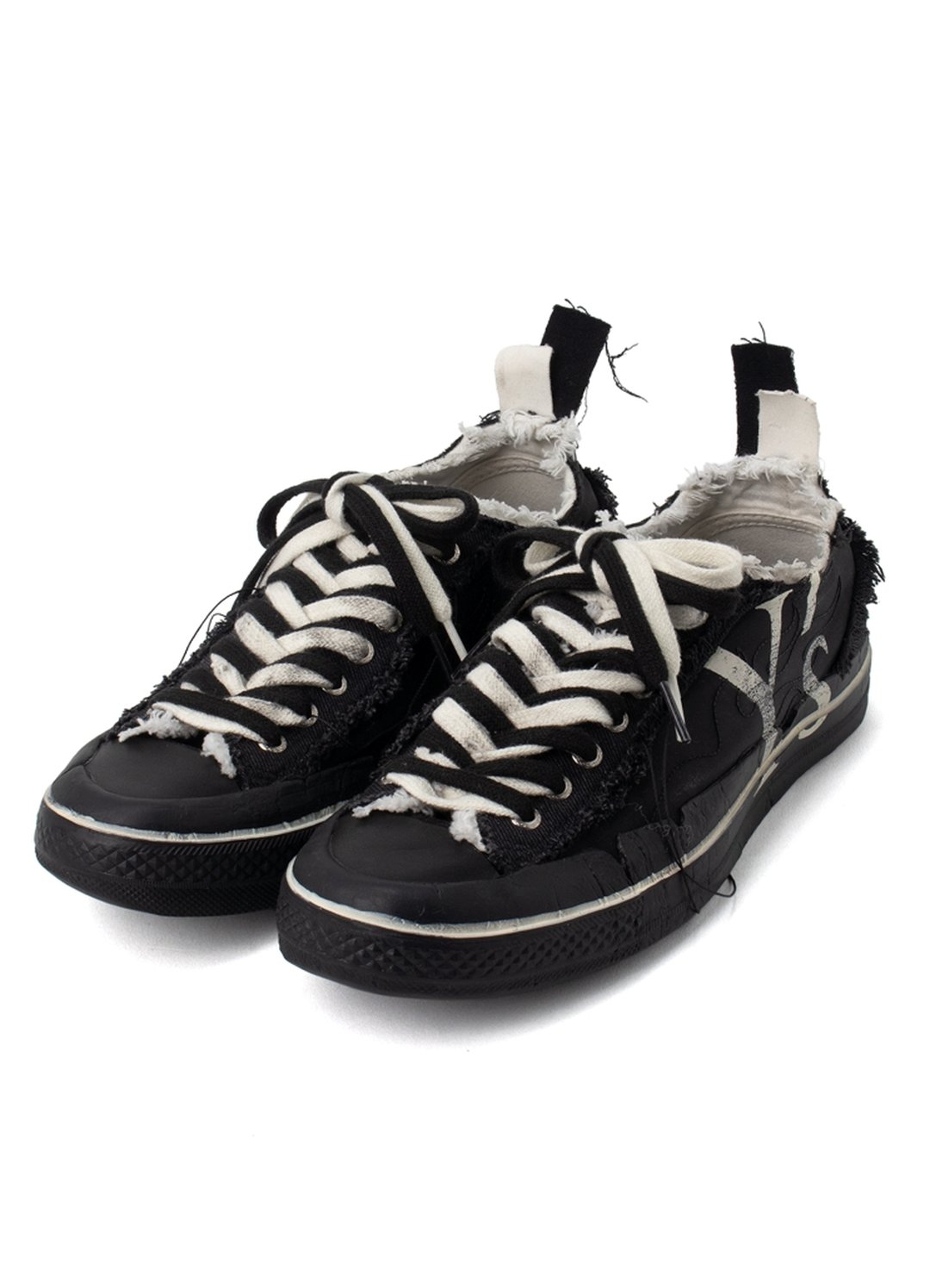 また、ファイヤースニーカーは炎の熱で溶けたような印象を与えるデザインと大胆な断ち切りが特徴的なローカットモデルだ。ダメージ加工されたソール、両サイドの炎の刺繍、Y’sロゴプリントなど、細部にまでこだわった仕上がりとなっている。ホワイトとブラックの2本のシューレースが付属され、自在に楽しむことができる。