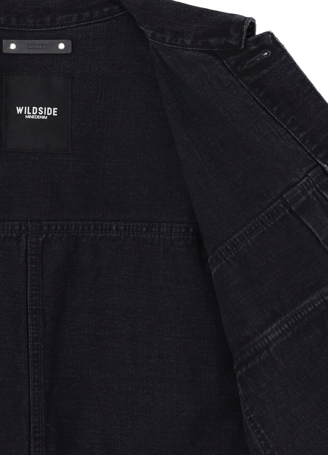 今回の新作では、WILDSIDEを象徴するブラックにカスタムしたファッションアイテム4型が登場する。ファーストタイプをベースとしたトラッカージャケットは、より深みのある黒を追求し、糸の染色工程からこだわり抜いたMINEDENIMオリジナル12ozブラックデニムを採用。ヴィンテージライクなUSED加工を施し、ルーズなシルエット、クラシカルなディティールデザインに仕上げた。また、Tシャツには、武骨な表情を持つミディアムオンスのオリジナルブラックボディにスクエアポケットを配置し、ジーンズを模したダブルステッチや補強用のリベットはMINEDENIMオリジナルのものを使用してデニムらしさを表現した。パンツ2型には、株式会社ヨウジヤマモトのオリジナル生地、ウールギャバジンとコットンカツラギをそれぞれに使用。フロント2本の深いタックを配し、ゆったりとした腰回りから裾にかけて強めのテーパードをかけた特徴的なシルエットを実現した。ブラックを基調とした両ブランドの世界観が融合した特別なコレクションとなっている。