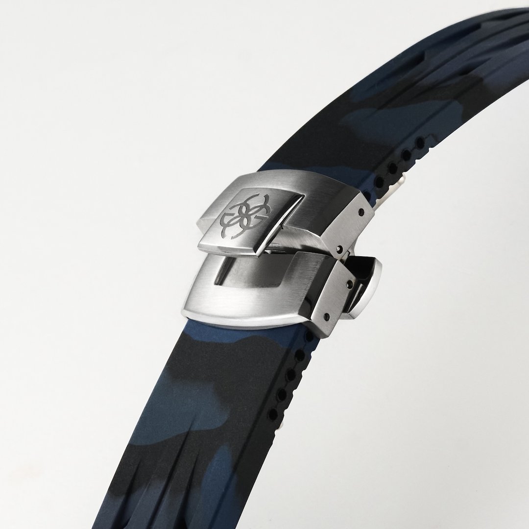 また、チタンやカーボンなどの素材を用いたケースとの組み合わせにより、軽量でありながらも存在感のある仕上がりを実現。テクニカルな精密さとカモフラージュデザインの表現力を融合したコレクションとして注目されている。