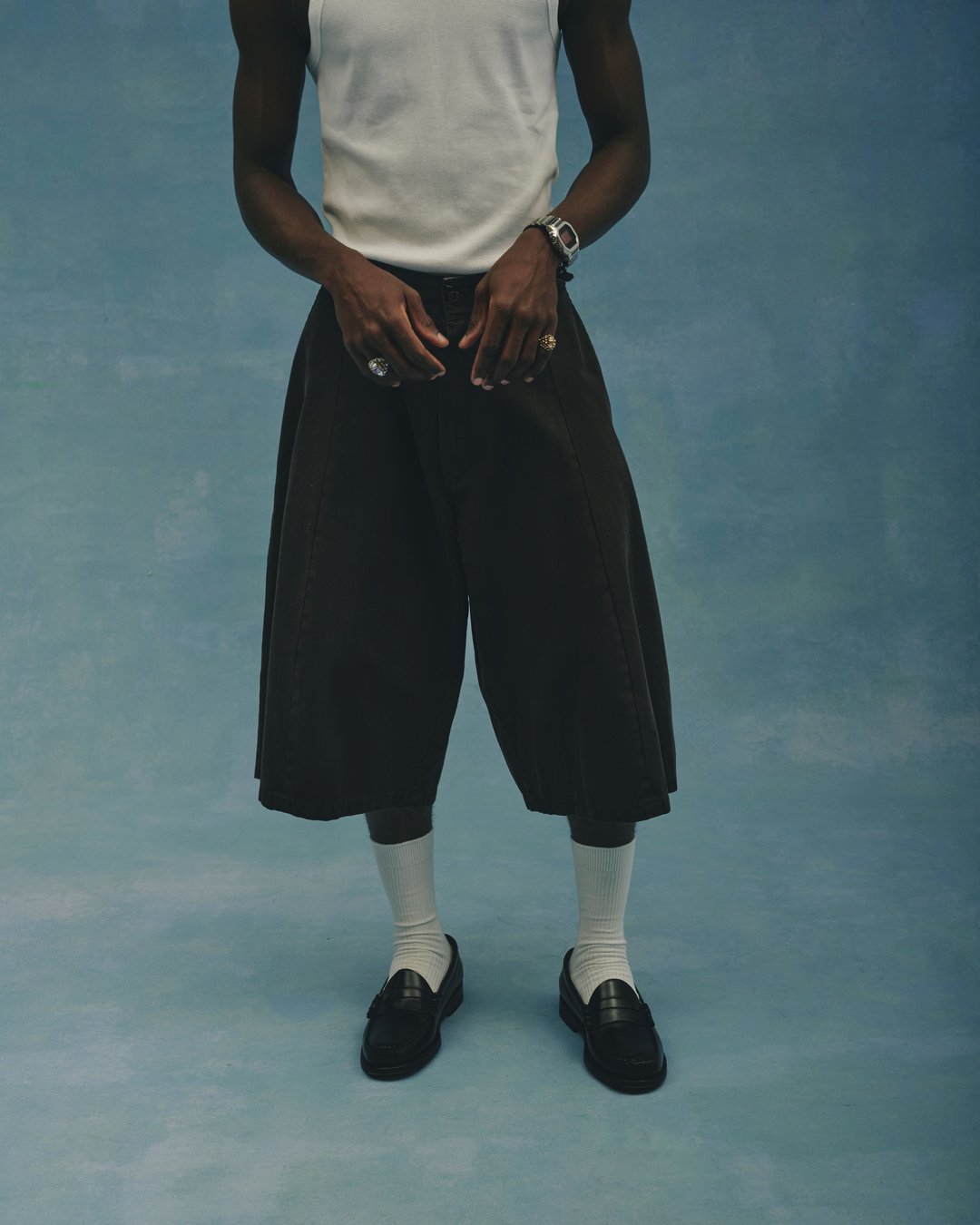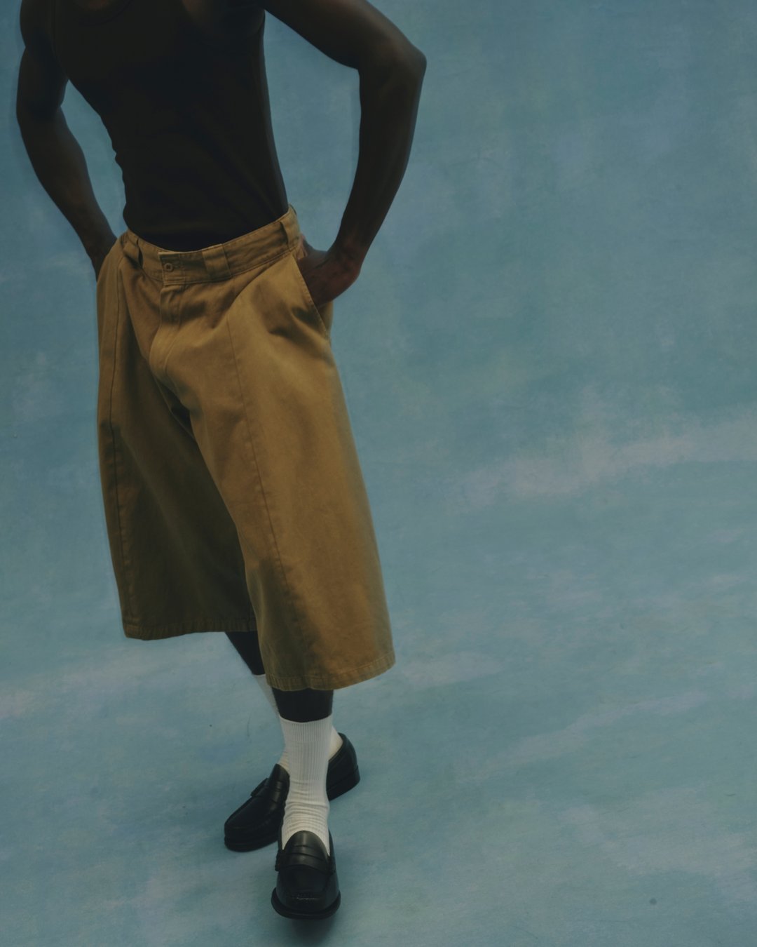 そのストリートの礎とも言える名作、膝下レングスのルーズフィットモデル「42283」をベースに、25SS別注で瞬く間に完売を記録した「Vertical Cut(垂直切り替え)」手法を用いることで、まるで2本のショーツを繋ぎ合わせたかのように歪(いびつ)なシルエットへとアップデート。あえて表現した剥き出しの粗さと「下手くそなかっこよさ」には、初期衝動的なクリエイティビティが宿っている。