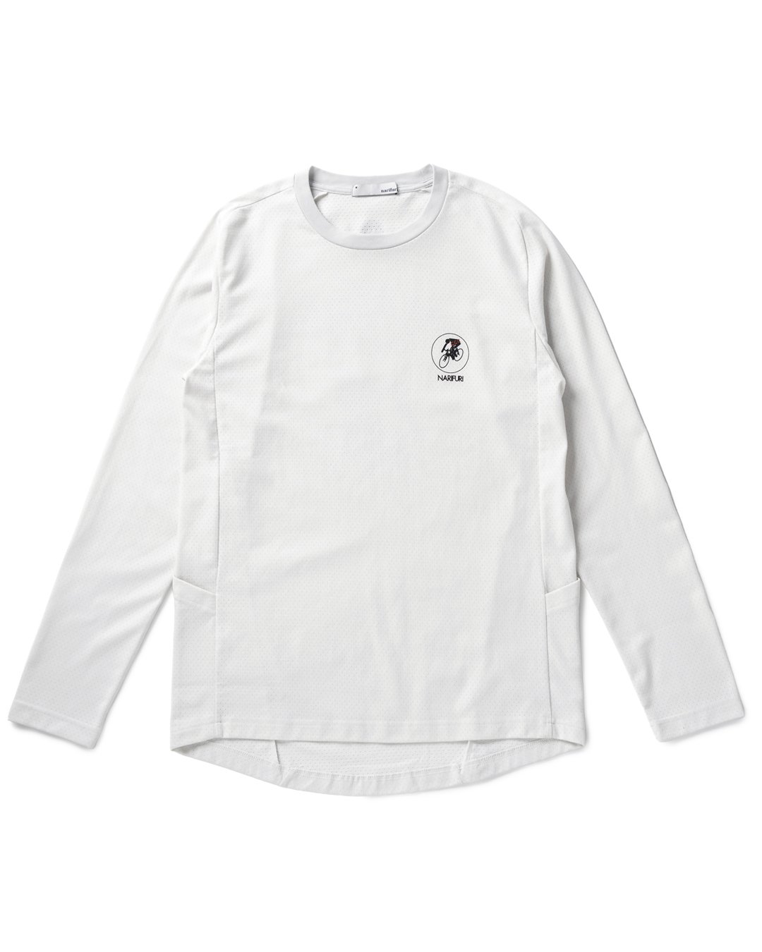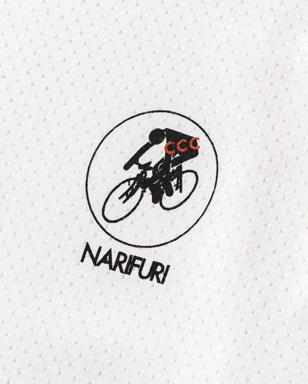 コラボアイテムには、narifuriオリジナルの「マルチテックメッシュ」を使用。吸汗速乾性や通気性を兼ね備えつつ、見た目はコットンに似た自然な表情を持つ。この素材はカジュアルライドを楽しむ人々のために開発され、リラックスした着心地を提供する。