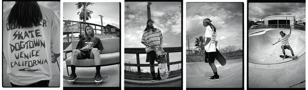 このコレクションは、70年代ベニスビーチでサーフィンのスタイルをストリートに持ち込み、現代のスケートボードの礎を築いた「Z-BOYS」にルーツを持つDOGTOWNの熱狂を背景にしている。スケートボードをアートやパンク、ライフスタイルに昇華させた伝説的ブランドだ。