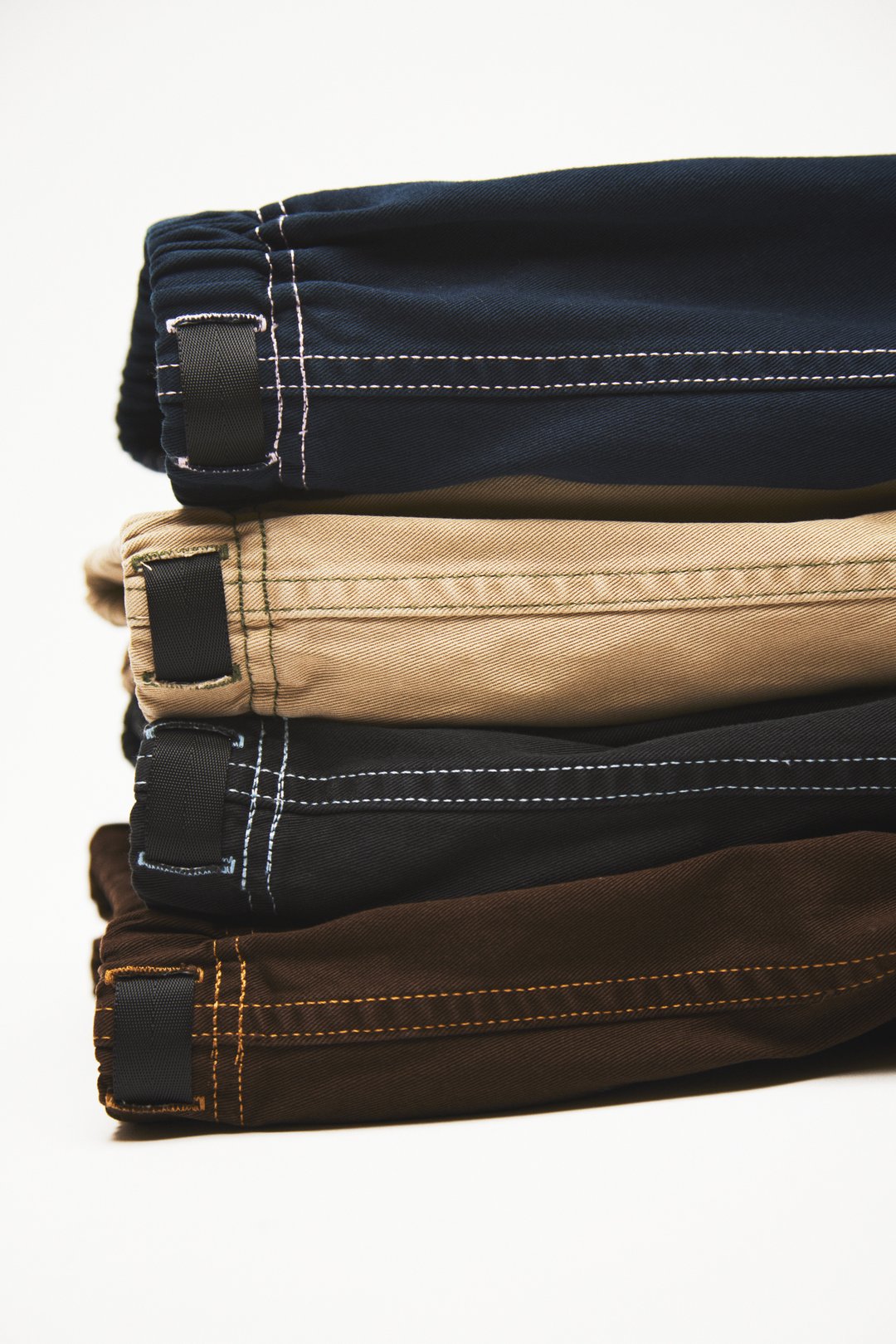 さらに、生地には製品(顔料)染めとバイオウォッシュ加工が施され、ナチュラルな風合いとヴィンテージライクな表情を与えている。程よいハリコシを持つ一方で、穿き込んだような柔らかさを実現しており、製品染め特有の個体差を楽しむこともできるのが魅力だ。
