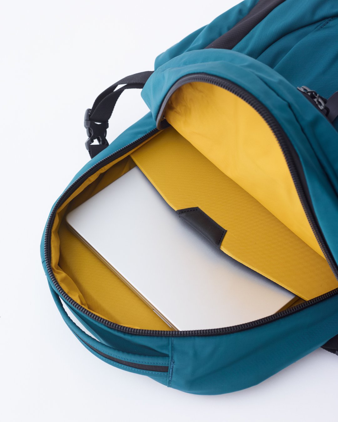 今季リニューアルした“NEW”ペッパーロックシリーズは、この「Pepper Rock Advance」に採用されている背面構造を標準装備。これにより、快適性が大幅に向上している。背面ウエスト部分は身体にフィットしやすく、動きに自然に追従する形状を採用。さらに、取り外し可能なウエストテープを備え、荷物の量や使用シーンに応じて柔軟に活用できる。全体の構造、フォルムも見直され、ボトムに丸みをもたせることで背負ったときのシルエットがよりスマートでクリーンな印象になった。メインコンパートメントには15インチ対応のPCスリーブを搭載し、大型画面のデジタルタブレットを入れても安心して持ち運べるように従来モデルより固めのメッシュスリーブにアップデートされている。