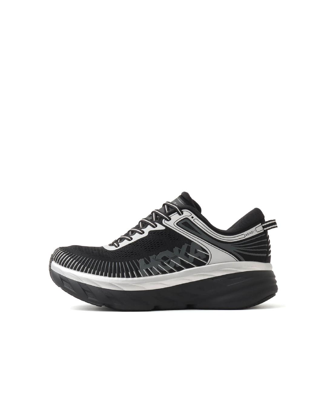 ”BONDI 7”は、「HOKA」随一のクッション性を誇るモデル。ボリューム感のあるブラック×シルバーのカラーリングが足元に安定感とモダンな印象を与え、長時間の歩行やデイリーユースでも快適さをキープ。