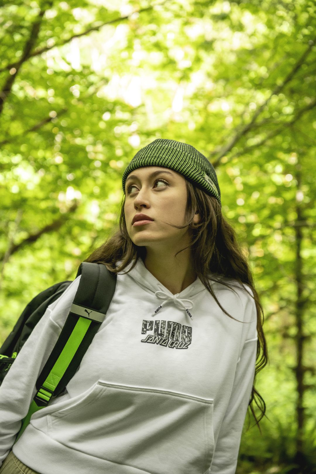 コレクションのラインアップは、シューズをはじめ、T シャツやジャケット、パンツ、キャップ、バッグなどのアイテムが登場。シューズは、プーマの定番モデルである「PUMA SUEDE (スウェード) 」や女性向け厚底モデル「MAYZE (メイズ) 」をラインアップしています。その他のラインアップとして、Santa Cruz のアーカイブからインスピレーションを受けたグラフィックを全面にプリントしたアパレルやスケートボードを運ぶための調整可能なストラップが施されたバックパックなど幅広いアイテムを取り揃えている。