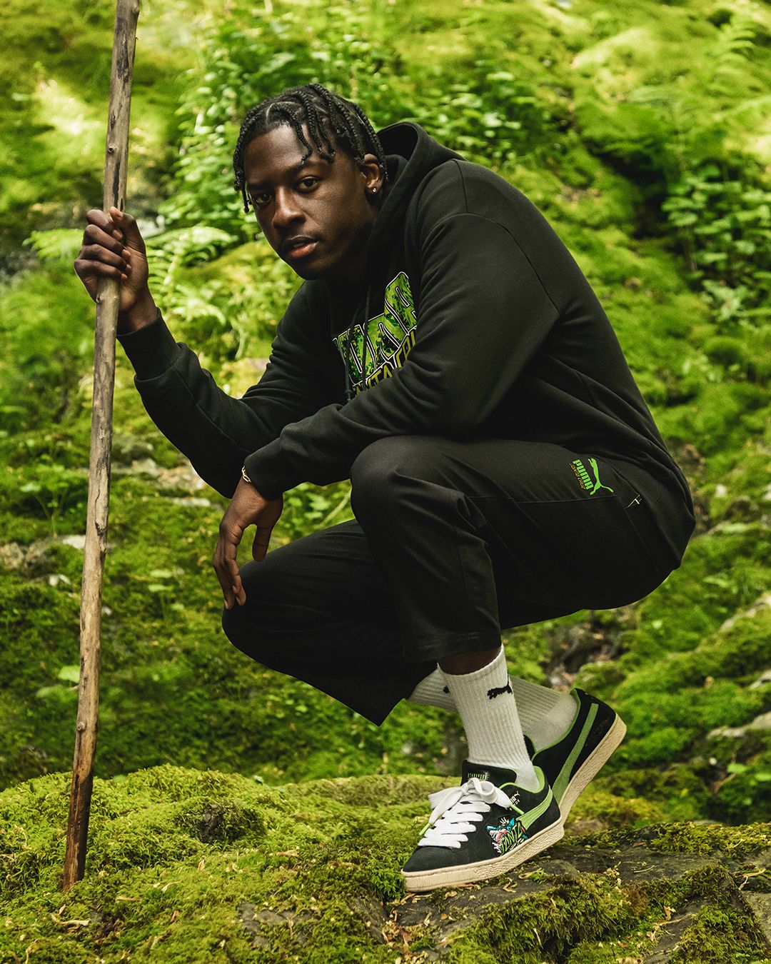 「PUMA x SANTA CRUZ」コレクションは、Santa Cruz のアイコニックなグラフィックとブラックやニュートラルカラーをベースにネオングリーンをアクセントカラーに使用した新鮮なカラーリングが特徴。また、“Skatemeets-style”の解釈をさらに高めたストリート感溢れるコレクションに仕上げている。