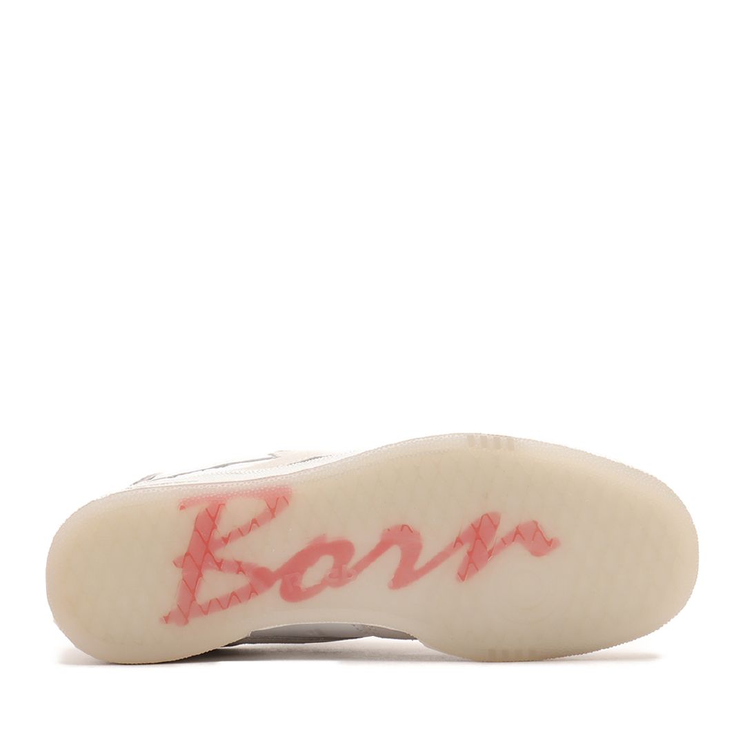 レザーアッパーをベースに、ヒールやつま先などのパーツにはスエード素材を採用し、ベースのレザーアッパーには「LÝFT」のイメージを象徴する、ダンベルやプレート、『Ý』のロゴを型押しで表現。クリアソールを採用することで、左右の裏面に”BORN TO LÝFT”のメッセージロゴが透けて見えるこだわりの仕様となっている。裏面のプリントカラーに合わせて、3社のロゴを組み合わせたスペシャルロゴをデザインした左右で異なるカラーのインソールを搭載。