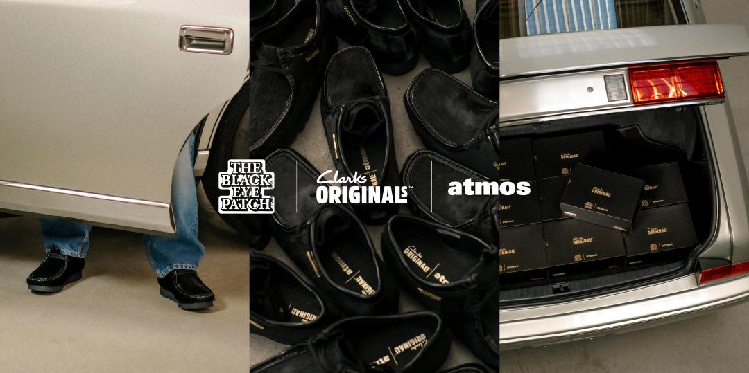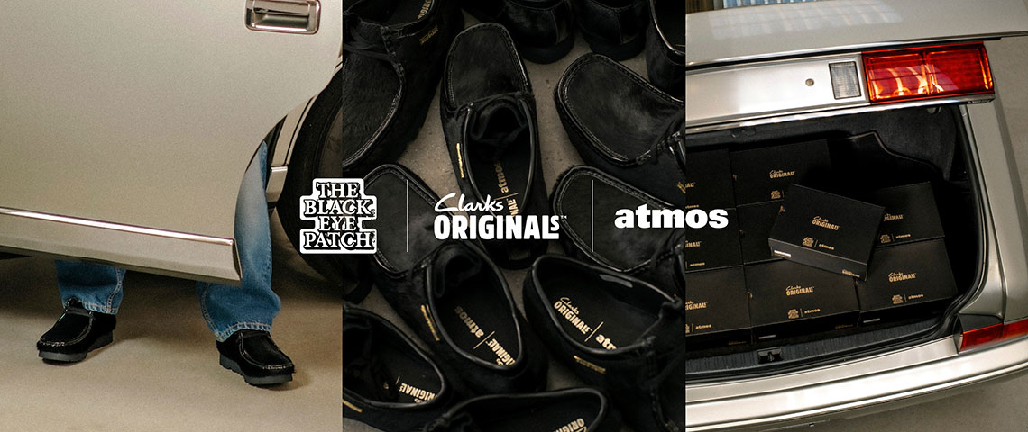 この度、「Clarks Originals」のアイコンモデル『Wallabee』をベースに、「atmos」と「BlackEyePatch」によるトリプルコラボレーションモデルが登場。