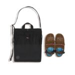 サンダルと同デザインを踏襲したトートバッグには、撥水性の高いパラフィン加工コットンリップストップ素材を採用。