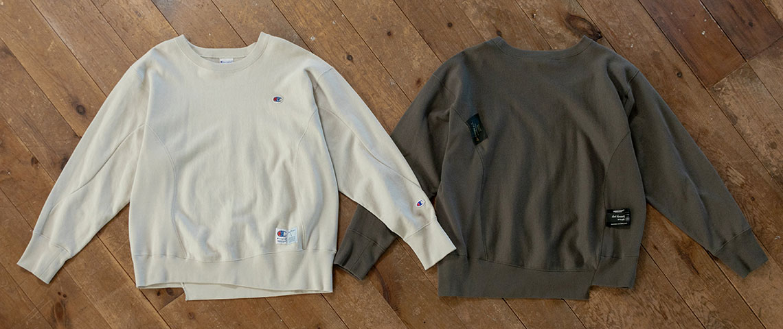 2026年春夏メンズコレクション「but beautiful 4.5… but beautiful for the rebel man」に登場した本コラボレーションアイテムは、Championのアイコンである「REVERSE WEAVE®(リバースウィーブ®)」をベースに採用。曲線的なカッティングが描くユニークなフォルムと、柔らかな肌触りの10ozスウェット素材により、快適な着心地とリラックスウェアとしての新たな価値を提案。