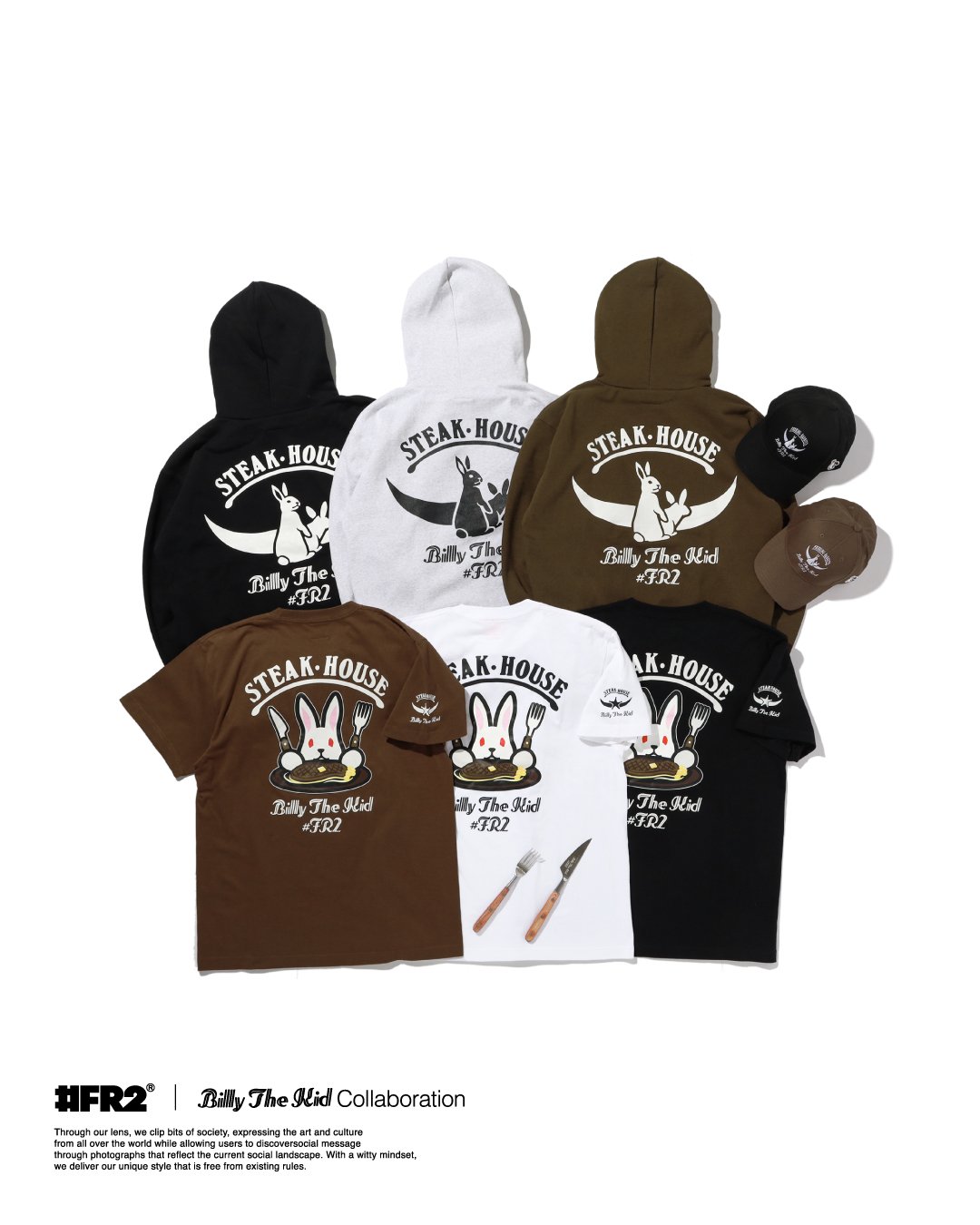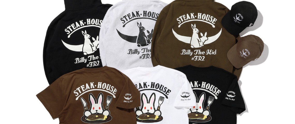 ストリートファッションブランド「#FR2」が、1970年代創業の大衆ステーキハウス「ビリー・ザ・キッド」との初コラボアイテムを発表。2月21日(土)から販売がスタートし、ファッションと食カルチャーの融合が注目を集める。