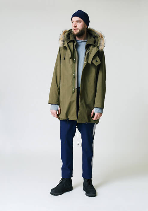 ”身体に最も近い道具”をコンセプトに、ユニークなプロダクトを数多く手掛ける「meanswhile」。そんな同ブランドが2017年A/Wシーズンコンセプトに”Army Contemporary Uniform”を掲げ、年代も地域もバラバラの架空のミリタリーウェアをメイク。ミリタリーウェアに共通する自然に溶け込む色を軸にしつつ、そこに「meanswhile」ならではの機能をプラスして現代の日常にも溶け込むデザインに昇華。また、ファブリックには使い古したような質感の生地から最新の機能素材まで取り入れ、さまざまな年代を跨ぎ、紡ぐようなコンセプチュアルなコレクションにまとめている。