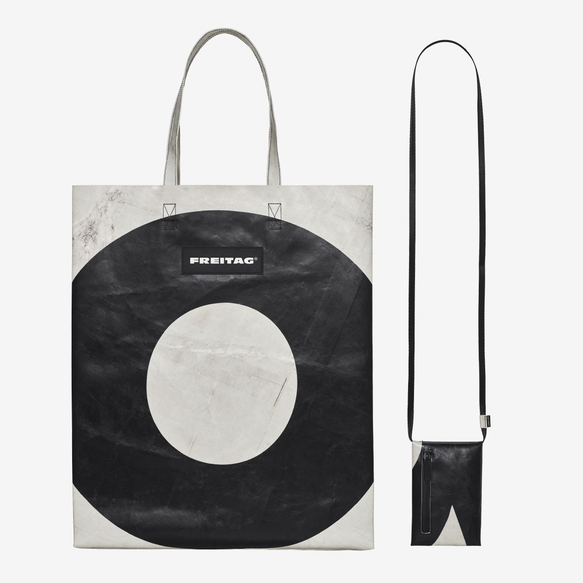 F729 EXTRA+LARGEは威風堂々としたトートバックと小さく実用的なエキストラの息の合ったコンビネーション。存在のビッグさに自信がある人や、本当のアイデンティティーを隠したい人あるいは単にクリスマスや他の買い物のプライバシーを守りたい人のための、同じトラックの幌から切り出したオーバーサイズの一点物デュオ。