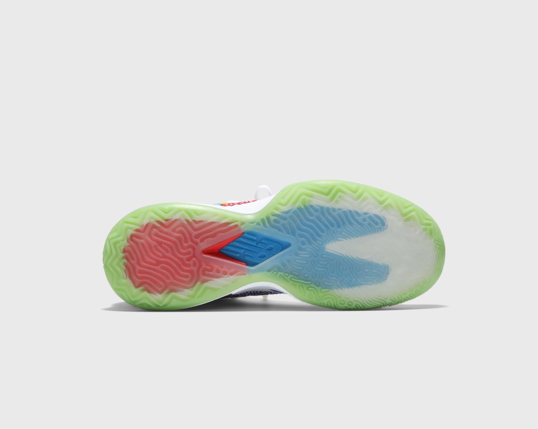カワイ・レナードとともにデザインされた本モデルはどのポジションでもマルチにプレイできるよう設計。ゲーム時にカワイ・レナードも着用しているモデル。ミッドソールには反発弾性に優れた「FuelCell(フューエルセル)」を搭載し、究極のエネルギーリターンを提供することで、ゲーム全体を通して爆発的なパフォーマンスを維持。新たに開発されたフルレングスパフォーマンスプレート「NBファースト」やアッパーに採用された「Kinetic Stich」は足のブレを権限させ、カットインやジャンプ時などの瞬間的なプレイでも安定性を発揮。彼を象徴する編み込みのヘアスタイルに着想を得たアッパーのステッチデザインも特徴。類まれなるパフォーマンスを後押しする機能性と快適な履き心地を備えたシグネチャーモデル。