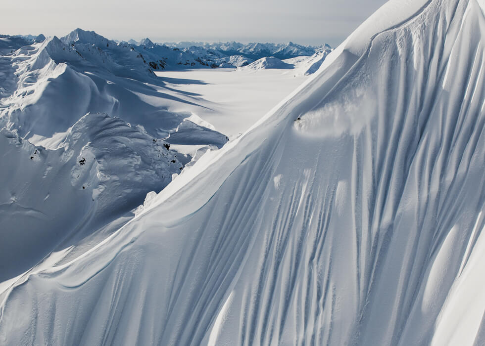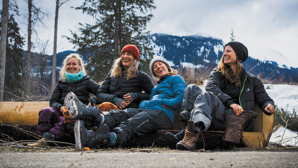 アラスカは2年連続で行ったんだけど、1年目は3週間にわたりストームが続き、太陽を待つ状態だった。3日間の晴れがあるのはわかっていたけど、とにかくそこは我慢が必要だった。ハイニーは伝説的な場所で、ガイドと一緒にヘリに乗っていると、「あそこは誰々が攻めたライン」だとか、「誰々はあそこでクラッシュした」など、いろんな話を聞くことができる。過去20年間に出たスノーボード雑誌のロケ地巡りツアーのような感じだったわ。ロビンとマリーは以前にもアラスカを訪れたことがあるけど、ヘレンとジェイミーは、”ドロップインするまで斜面が見えないようなライン” はそのときが初めてだった。正直なところ、何度滑ろうが、アラスカに慣れることはない。とにかく恐怖がつきまとう。なのに、アドレナリンが再訪を願うの。借金をしてでも、毎シーズン行きたくなるのよ……。スノーボードの聖地なのよね。トップパークライダーのジェイミーをアラスカへ連れて行ったのも良い経験になったわ。残りのクルーは長年に渡り山滑りを中心にやってきたから、今度は私たちの経験をジェイミーに伝え、彼女がリアルな山でもヤバイ滑りができるようにサポートする番なのよ。ジェイミーは私たちに質問を投げかけ、私たちはラインの見方などをアドバイスするの。そのやりとりで、私たちもじっくり状況を把握することができたのよ。そして、彼女はやってくれたわ! プライドが傷ついたこともあっただろうけど、アラスカでのライディングはそういうもの。あそこにいるだけで、名誉なことなのよ。アドレナリンであふれるライディングが終わると、生まれたままの姿の自然を堪能できるの。ライディングがない日にはハイキングや釣りをしたり、果てしない自然との時間を満喫した。あとは、ほかのクルーとハングアウトしたりね。ギギ・ラフやジェイソン・ロビンソン、ニコラス・ミューラーたちに見送られてアラスカを去るときは、ちょっと寂しかったわ。