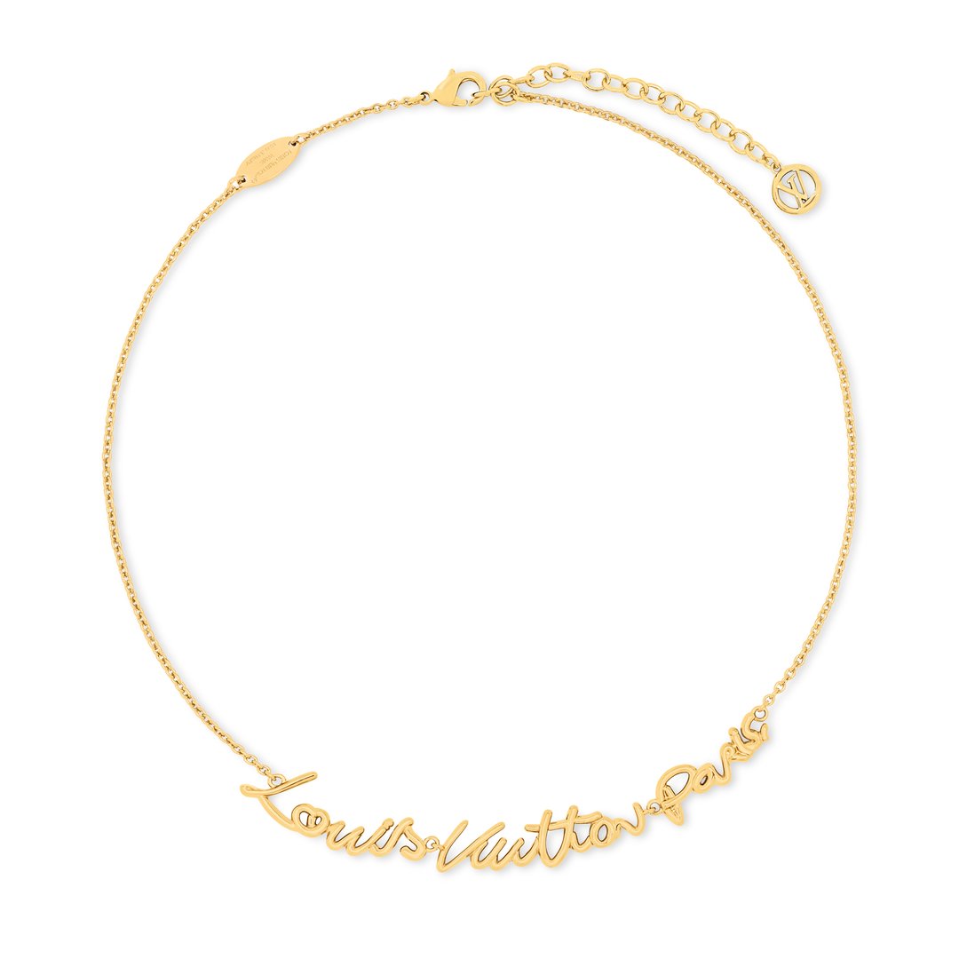 精緻なデザインが魅力の「ネックレス·LV スクリプト」は、繊細なゴールドカラーのチェーンに吊り下げられたセンターピースに流れるような手書き風の「Louis Vuitton Paris」シグネチャーがあしらわれている。この上なくフェミニンでプレシャスなこのネックレスは、あらゆる装いにさりげない幻想的なアクセントを添える。