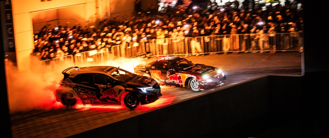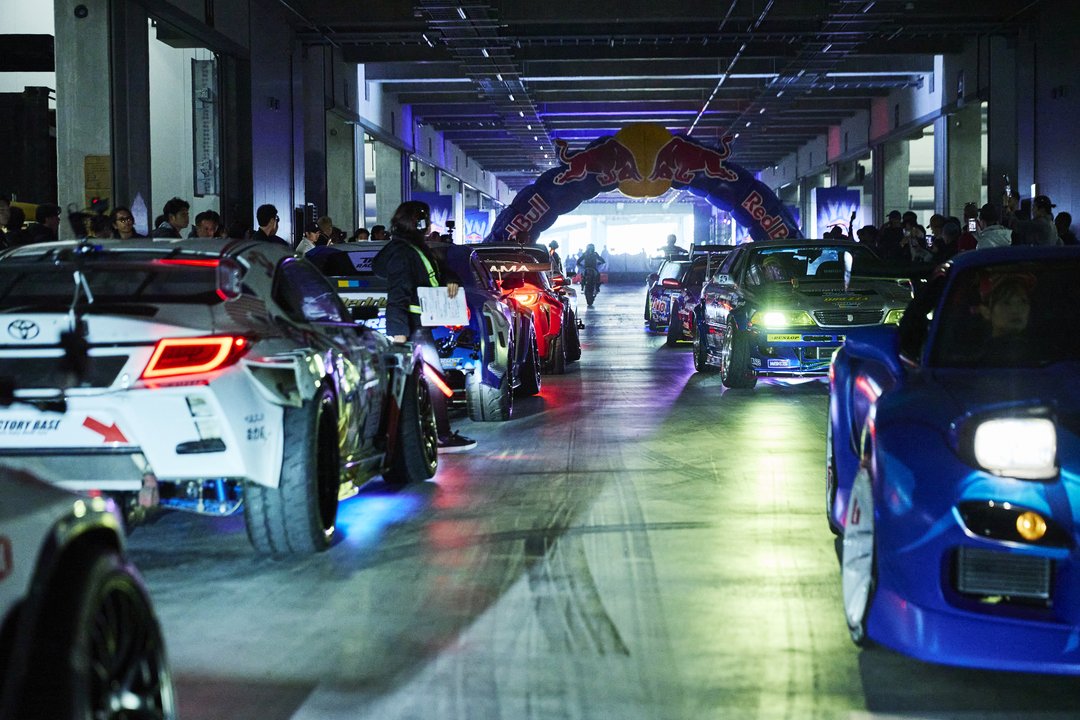 この夜は普段の物流倉庫がネオンライトと音楽に包まれ、約500台のカスタムカーやドリフトカーが集結し、観客を楽しませた。世界的に活躍するレッドブル・ドライバーたちが一堂に会し、夢の共演が実現。観客数は約5,000人に達し、会場は熱気に包まれた。